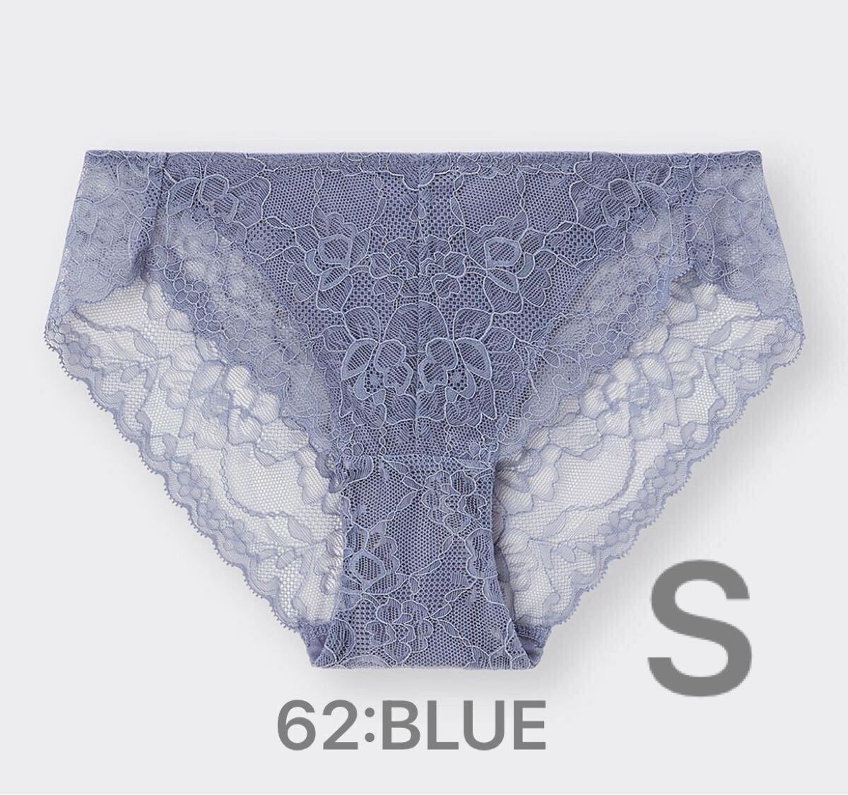 > セクシー新品ジーユー下着インナー GUくすみ62:BLUEブルーSサイズ総レースショーツ レギュラー ストレッチ花柄レース シースルー可愛い青