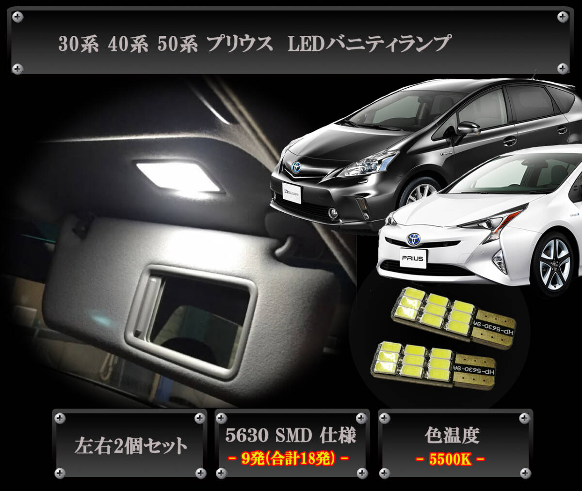 - 9連LED 2個 白色 バニティ 30系/40系/50系 プリウス
