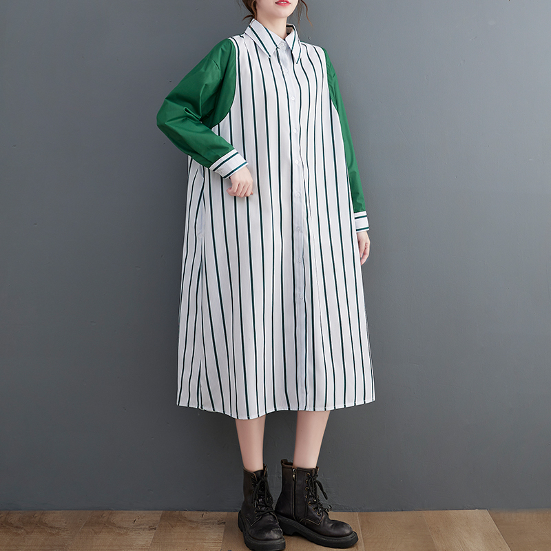 - 「同梱1万円送料無料」秋*新作*カジュアル*ゆったり大きいサイズ*ボーダー柄配色304050代*レディース**ロングシャツワンピース