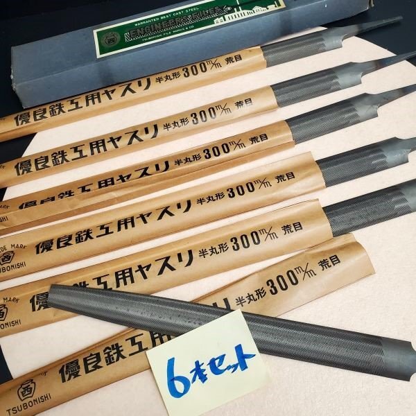 > 【アウトレット品】 ツボ西 優良 鉄工用 ヤスリ 半丸 300㎜ 荒目 6本セット (約2.3kg) 鑢 バリ取り 鉄工ヤスリ やすり sp-024-833