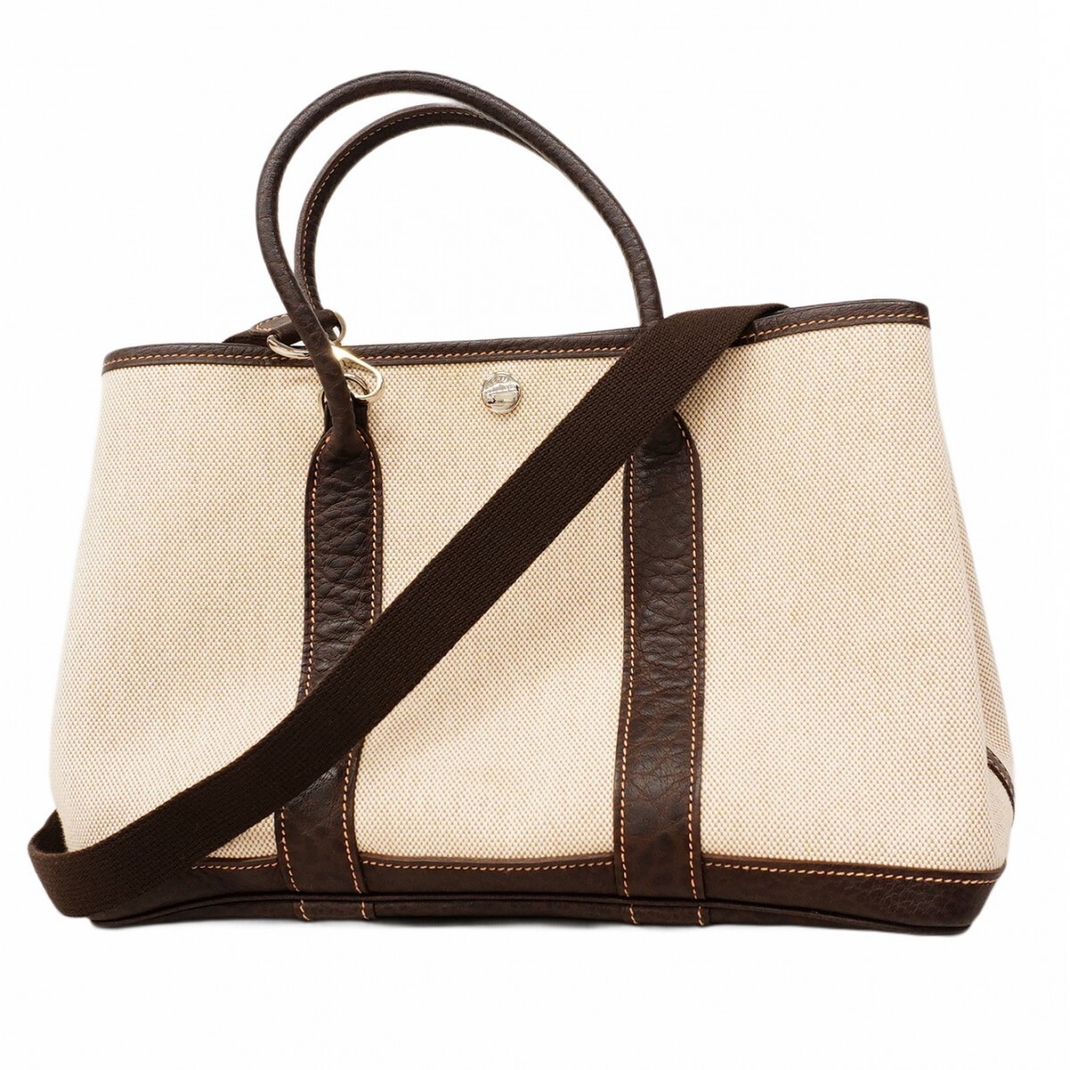 - 【5md4783-h】エルメス トートバッグ ガーデンパーティTPM トワルアッシュ ブラウン シルバー金具 □I刻印【中古】レディース