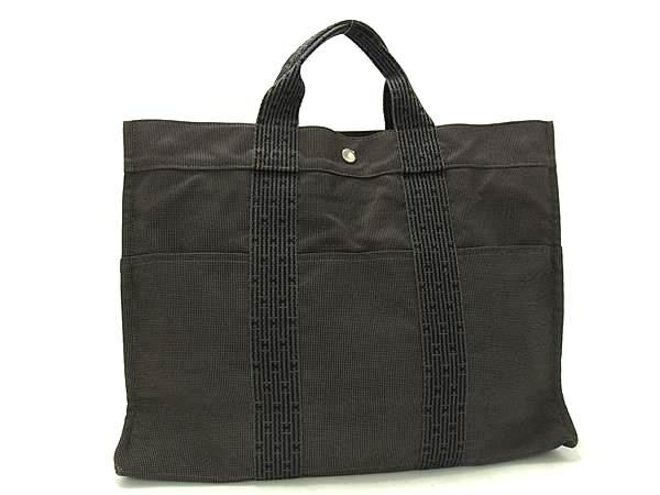 - 1円 ■美品■ HERMES エルメス エールラインMM キャンバス シルバー金具 ハンドバッグ トートバッグ レディース メンズ グレー系 GB2260