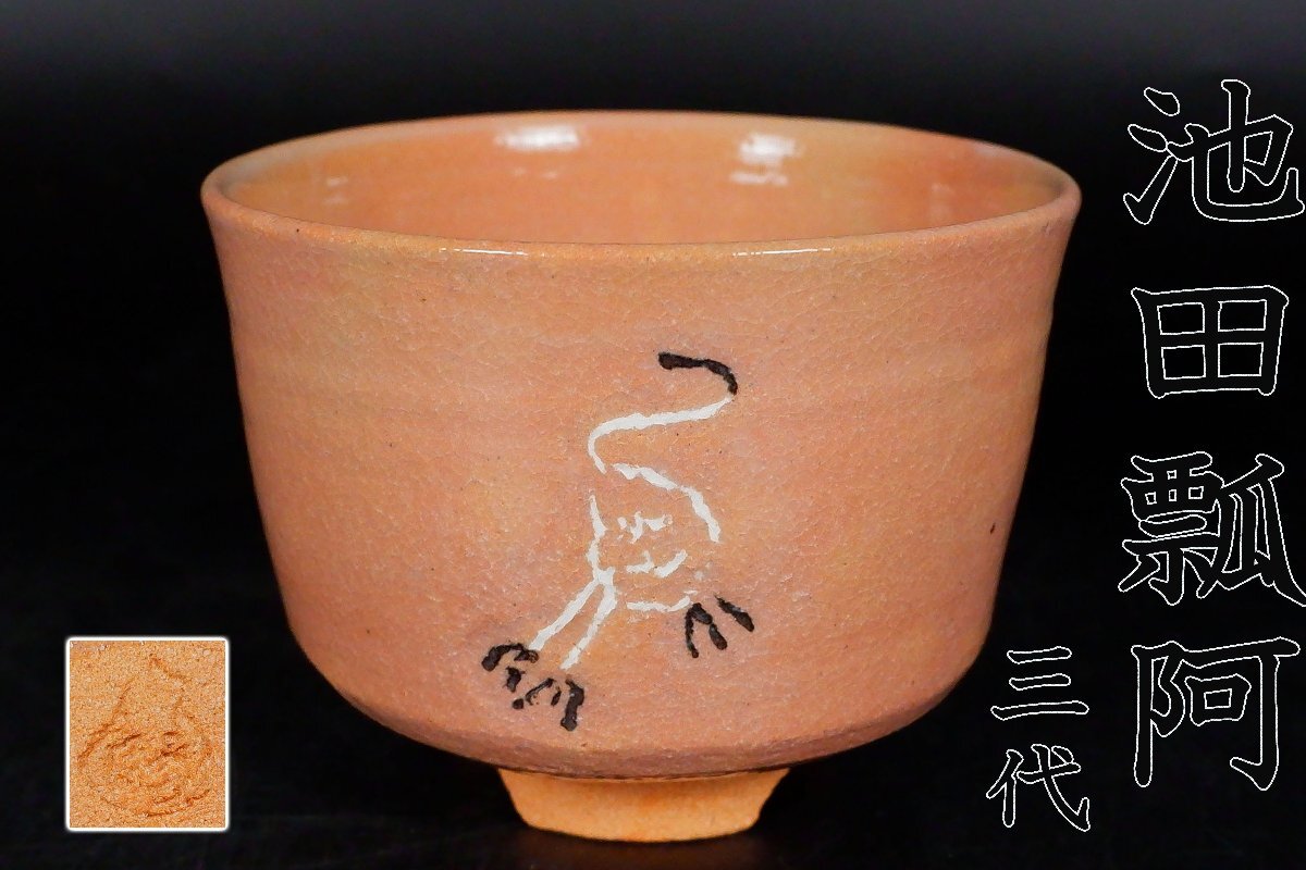 > 【MKA】3代池田瓢阿 御本立鶴茶碗 「不老」 共箱 ほぼ未使用 茶道具 真作保証