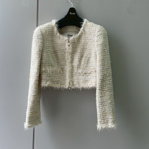 > H723-O15-8607 Rene ルネ TISSUE ツイードジャケット 36サイズ 6333060 ジャケット アイボリー系 日本製 レディース 婦人服 ハンガー付 OA