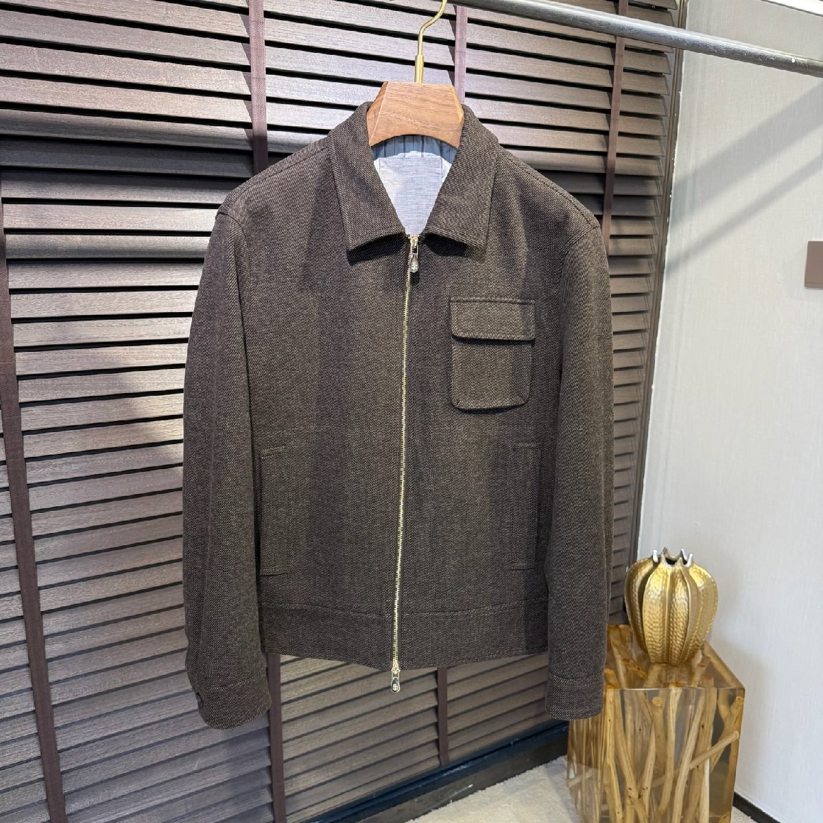 - カフェL★送料無料★ブルネロクチネリ★メンズ ビジネスカジュアル ジャケット,ウール混紡,ジップアップ オフィス アウター