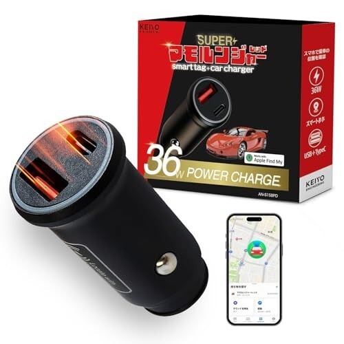- 【MFi認証】KEIYO 車載充電器+タグ Find My対応 AN-S158PD