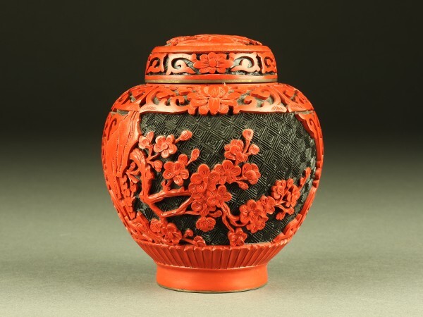 - 【宇】KA005 中国古玩 花彫刻 堆朱茶壷 茶入 煎茶道具