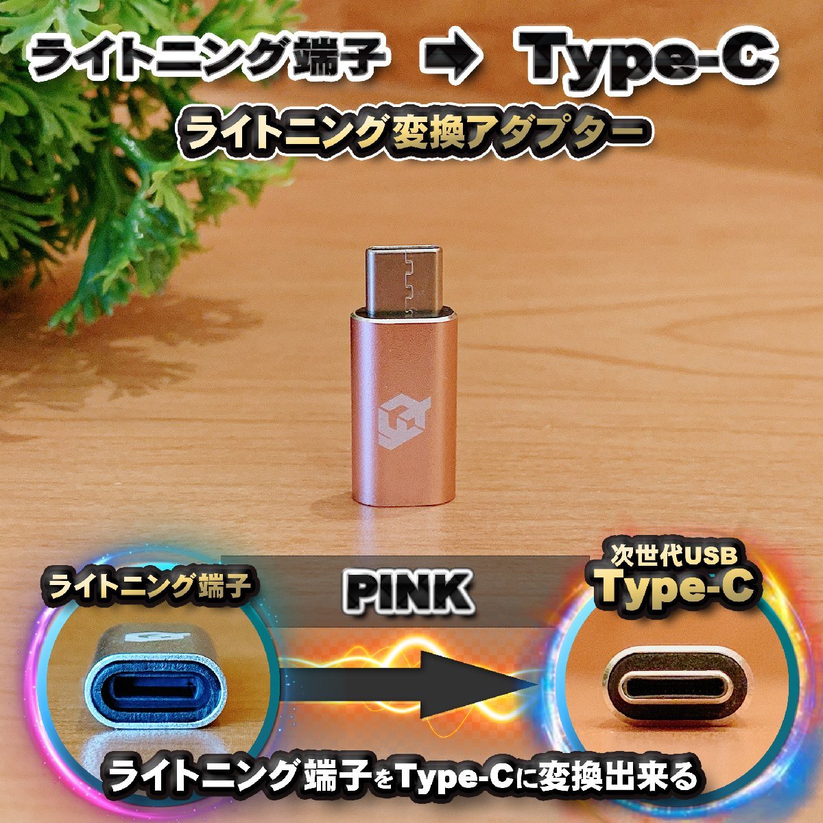 - iPhoneのライトニングケーブル → USB Type C 端子 に変換する アダプター x1 【ピンク】
