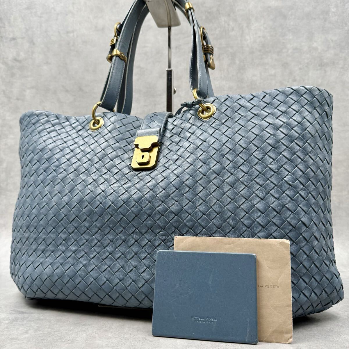 > 幻の逸品■美品/定価45万■ BOTTEGA VENETA ボッテガヴェネタ イントレチャート トートバッグ ビジネス A4 メンズ レザー グレーブルー