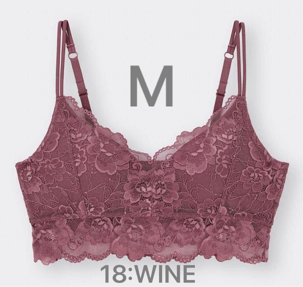 > 新品バーガンディGUナチュラルサポートブラ ジーユー Mサイズ ブラジャー ワイン下着ノンワイヤー65 70 75 A B C D Eレース ボルドー