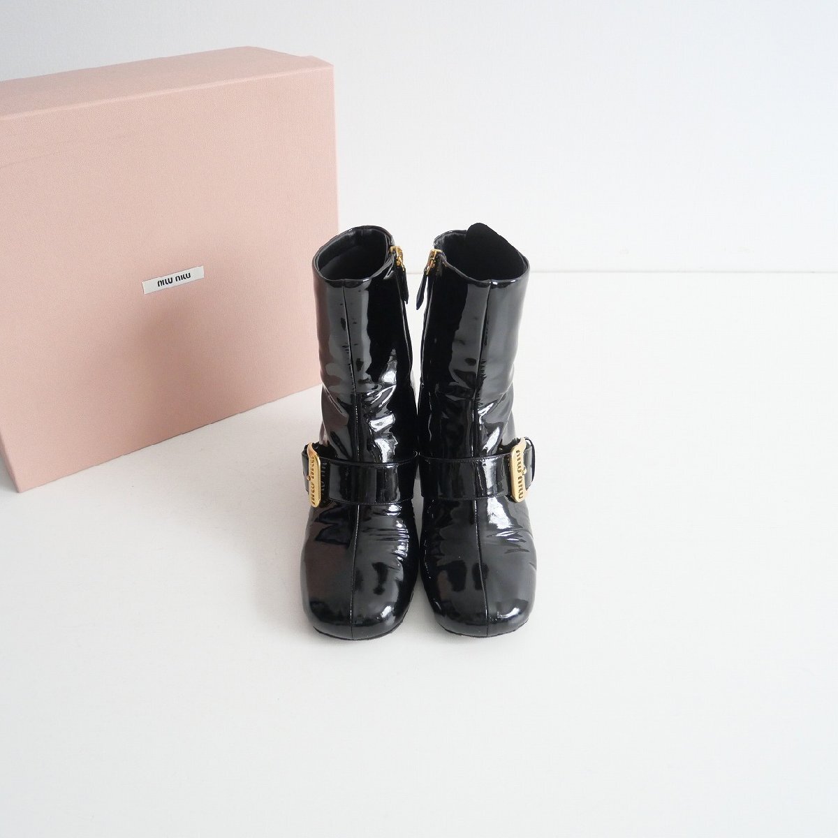 - 2022AW / MIU MIU ミュウミュウ / Patent leather booties エナメルブーツ 38 / 5T799D / 2311-0461