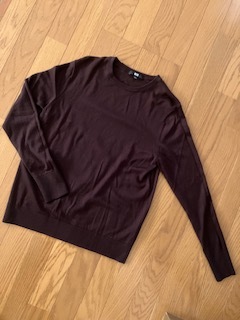 - ユニクロ エクストラファインメリノクルーネックセーター ダークブラウン Lサイズ