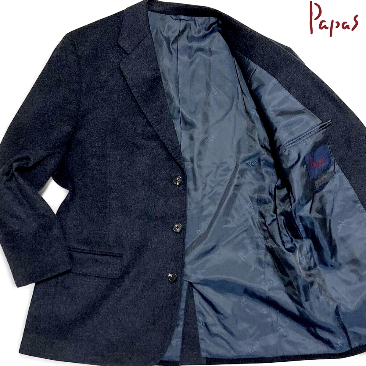 - 未使用級●XL相当 パパス 極上カシミヤ100% テーラードジャケット アンコン PAPAS 裏地ロゴ総柄 メンズ ビジネス ブラック 50 付属あり