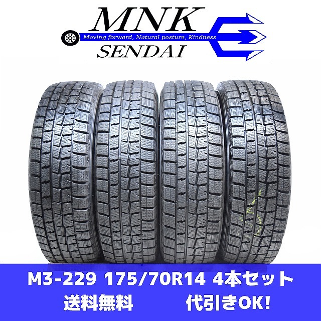 > M3-229(送料無料/代引きOK)ランクE 中古 バリ溝 175/70R14 DUNLOP WINTERMAXX WM01 2019年 8.5~9分山 スタッドレス 4本SET
