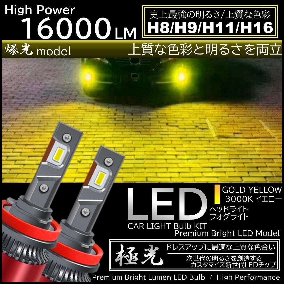 - 16000LM ゴールドイエロー 爆光LED ハイスペック H8/H9/H11/H16 LEDヘッドライト LEDフォグランプ イエローフォグ
