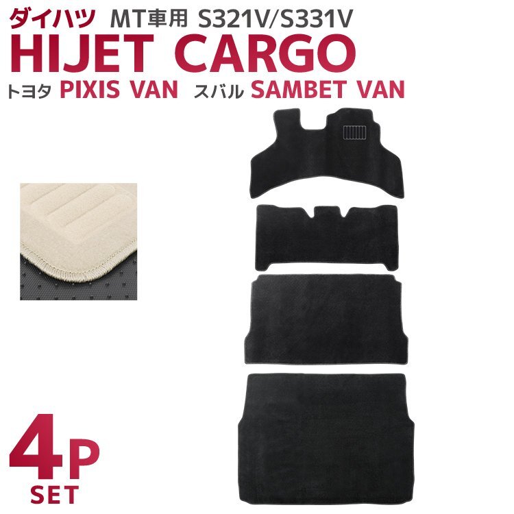> フロアマット 4点セット MT車専用 ダイハツ ハイゼットカーゴ 2WD 4WD対応 トヨタ ピクシスバン スバル カーマット 難燃性 ベージュ