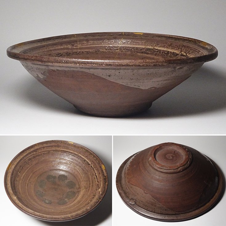 - 慶應◆江戸時代前期 三島唐津刷毛目大鉢 直径37cm 南海出土品 黒塗り時代箱 オランダ東インド会社輸出