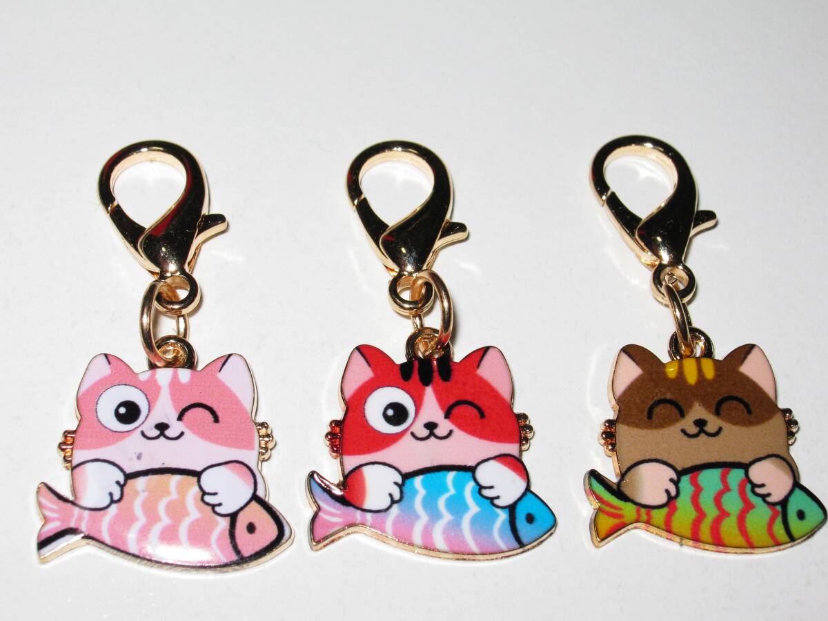 - 【お魚にゃんこ キーチャーム 3個】③ 猫 ネコ キーホルダー バッグチャーム ストラップ おしゃれ レディース ガールズ メンズ ボーイズ