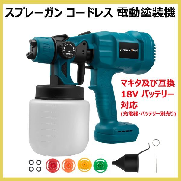 - スプレーガン ATSG01B 塗装・吹付用 タンク800ml コードレス マキタ18Vバッテリー適用 小型電動塗装用スプレーガン 日本語説明付