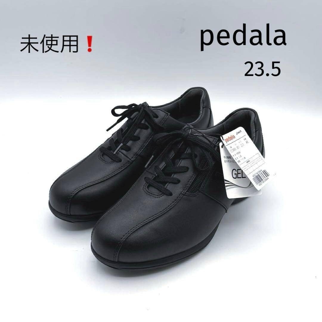 > 未使用 ペダラ アシック 23.5 コンフォートシューズ スニーカー ブラック アシックスウォーキング pedala サイドジップ