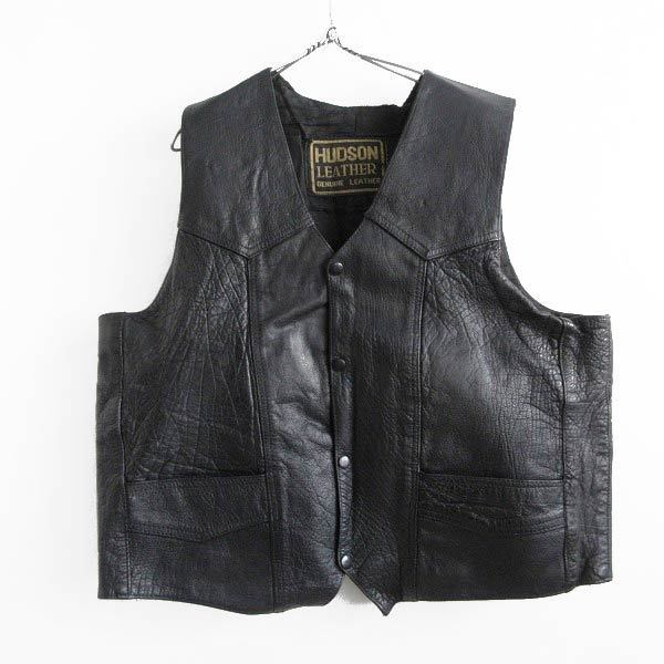 - HUDSON LEATHER バイカー レザー ベスト 黒 L-XL程度 カスタムベースに ブラック ビンテージ バイク d144-05-0001XV
