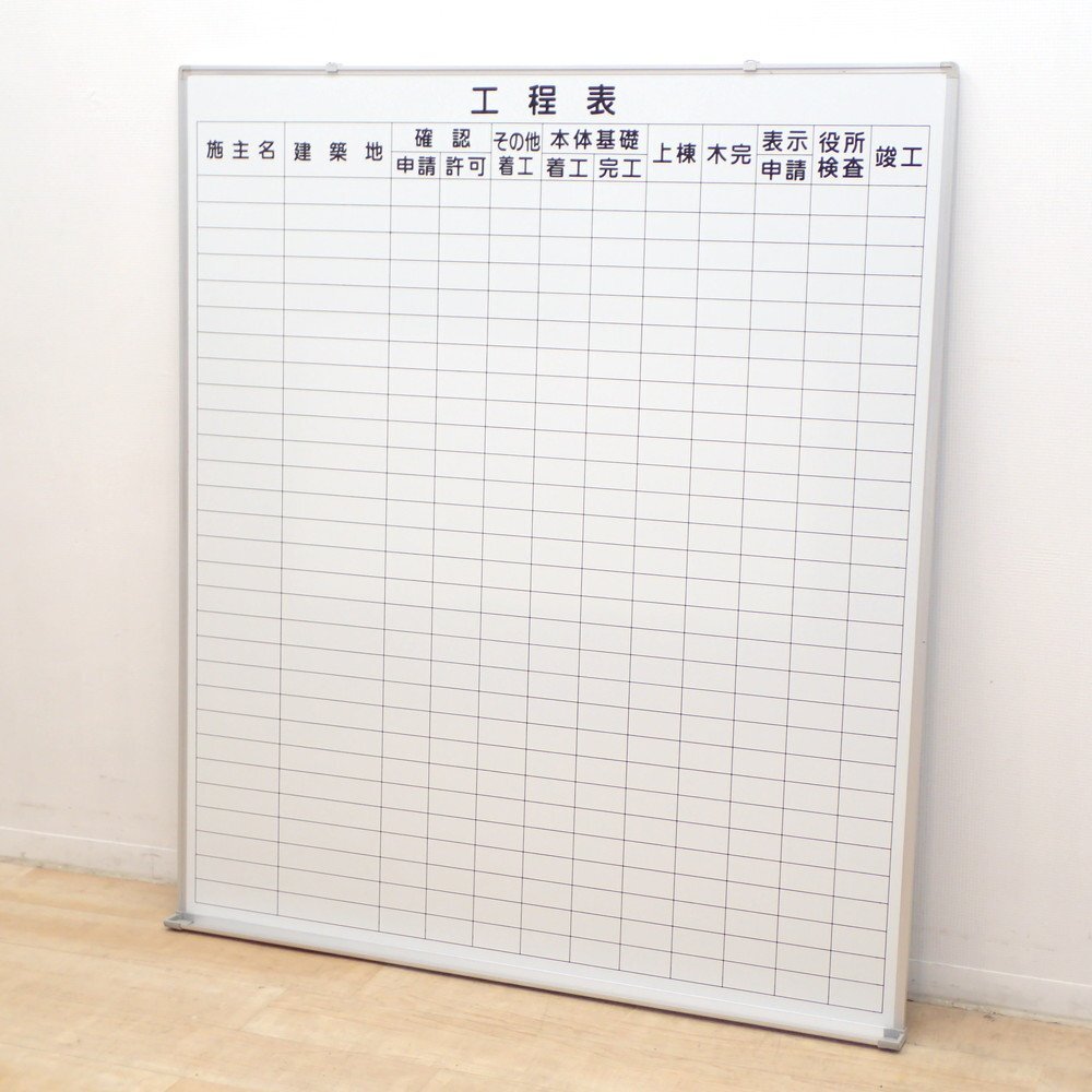 - 壁掛け式ホワイトボード 工程表 工事用 建設現場 W1200おう D60 H1360 白板 マグネット ペントレー スケジュール KK19204 中古オフィス家具