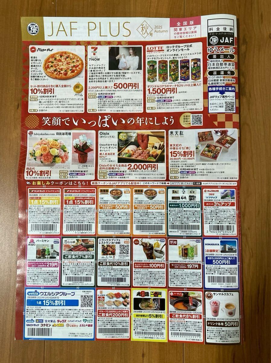 > JAF ジャフ クーポン 割引券 吉野家 マツキヨ すき家 ガスト デニーズ バーミヤン サンドラッグ バーガーキングココス夢庵PLUS 関東エリア