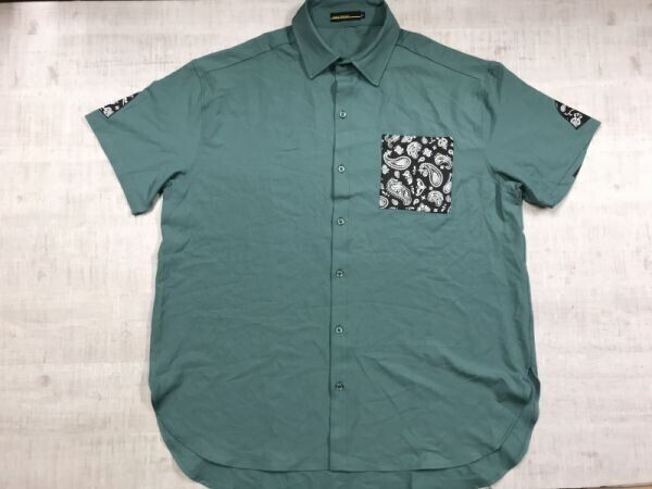 > ノーブルプロダクト NOBLE PRODUCT 韓国ストリート モード ペイズリー バンダナ柄切替 半袖シャツ オーバーサイズ メンズ M 緑