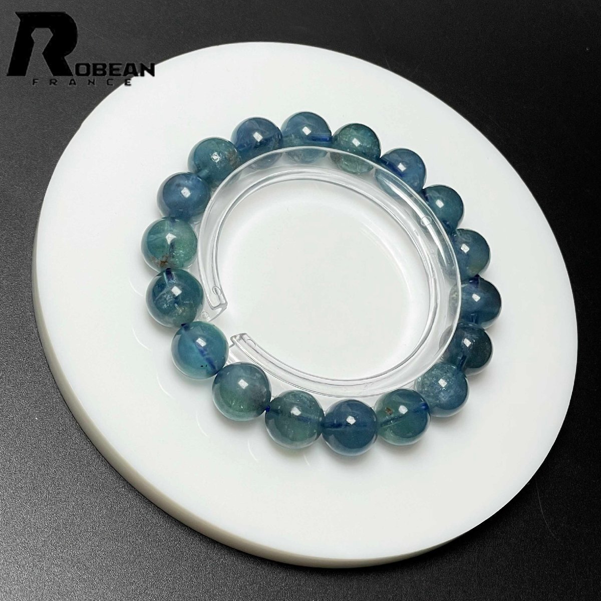 - 上級 EU製 定価14万円★ROBEAN・ブルーグリーンアクアマリン★パワーストーン ブレスレット 天然石 原石 お守り 11.4-11.8mm M0701722