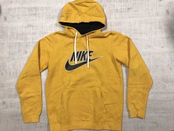 > ナイキ NIKE スポーツ ストリート ビッグロゴプリント スウェット フーディー プルオーバー パーカー メンズ コットン100% M 黄色