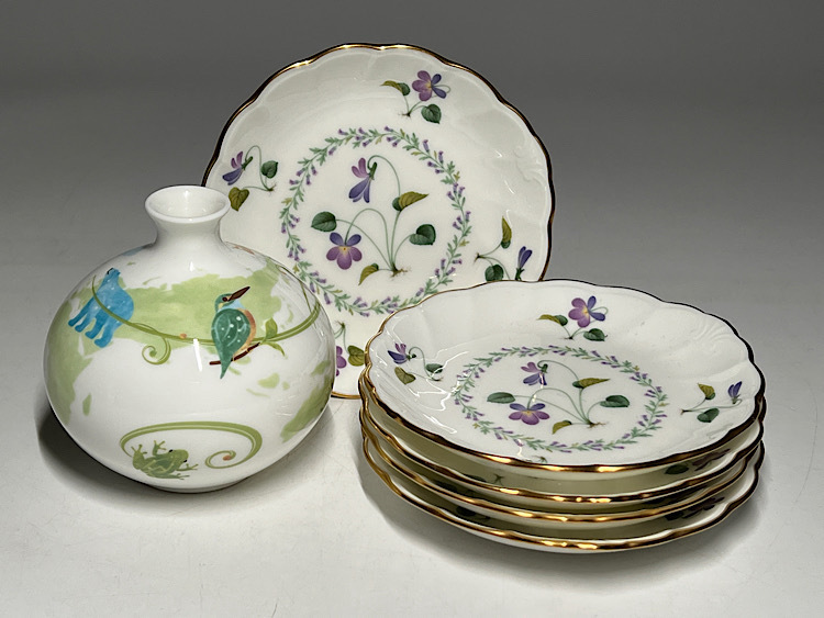 - 【瑞】Noritakeノリタケ 花柄小皿5枚+ミニフラワーベース