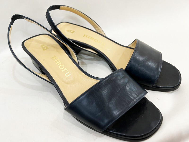 > HIROFU/ヒロフ レザーアンクルストラップローヒールオープンパンプス ブラック レディース サイズ 23.5cm カジュアル フォーマル
