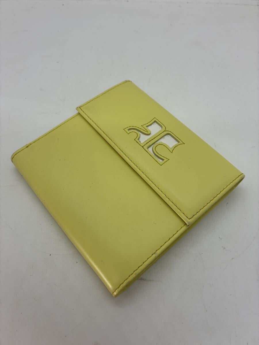 - courreges クレージュ レザー 二つ折り財布 イエロー