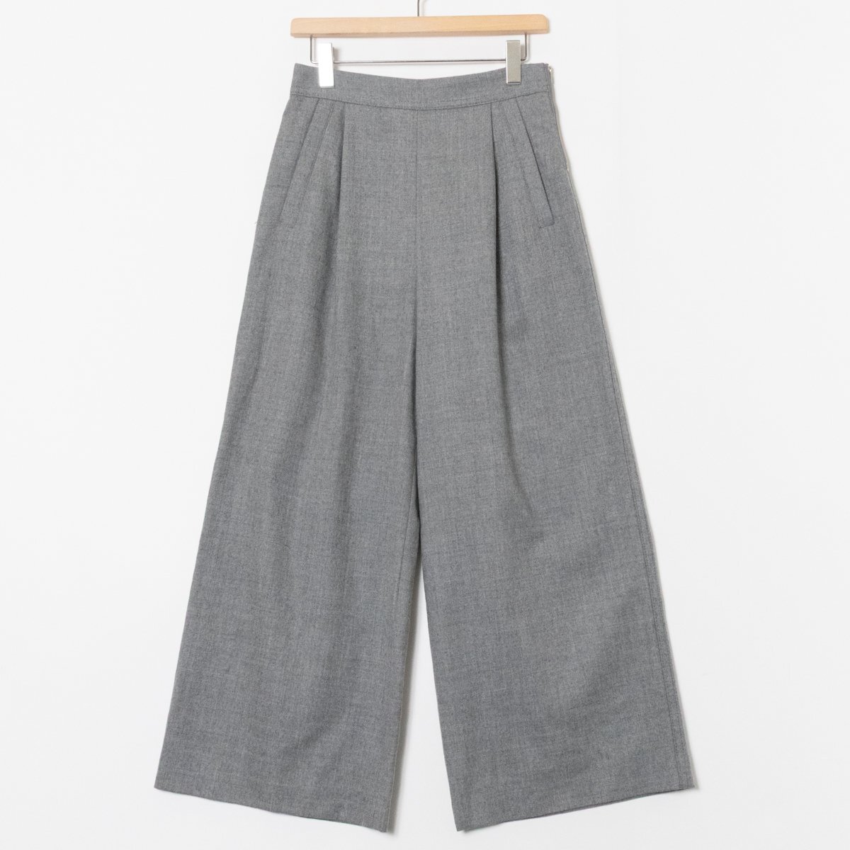 > TOMORROWLAND トゥモローランド ウールタックワイドパンツ 38 11-04-95-04733 ウール98% グレー 綺麗め 無地 シンプル 婦人 レディース
