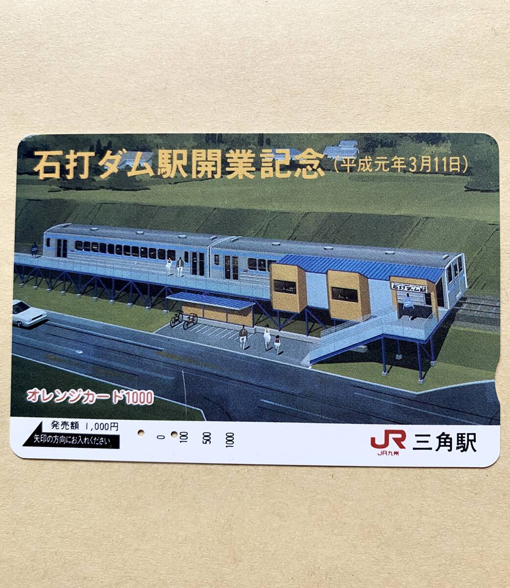- 【使用済】 オレンジカード JR九州 石打ダム駅開業記念 (平成元年3月11日) 三角駅