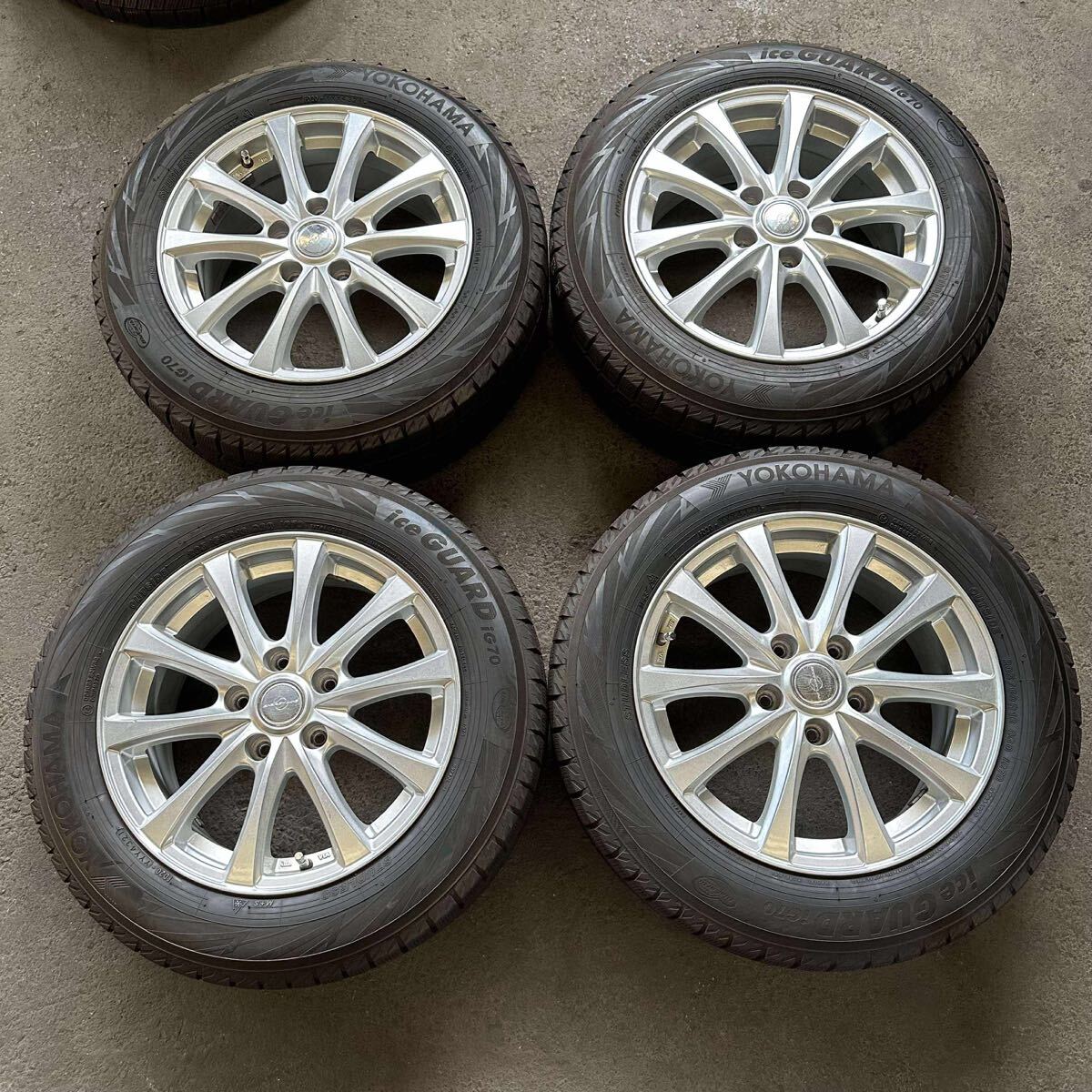 > 【6572】★ バランスを調整済み 205/60R16 4本セット冬タイヤバリ山 ヨコハマアイスガードiG70 2021年 ホイール 16x7J 114.3 ハブ64mm 穴5