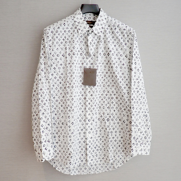 > LOUIS VUITTON 未使用に近い モノグラム シャツ Lサイズ メンズ ルイヴィトン 長袖 ホワイト LV トップス 白 質屋 神戸つじの 250398