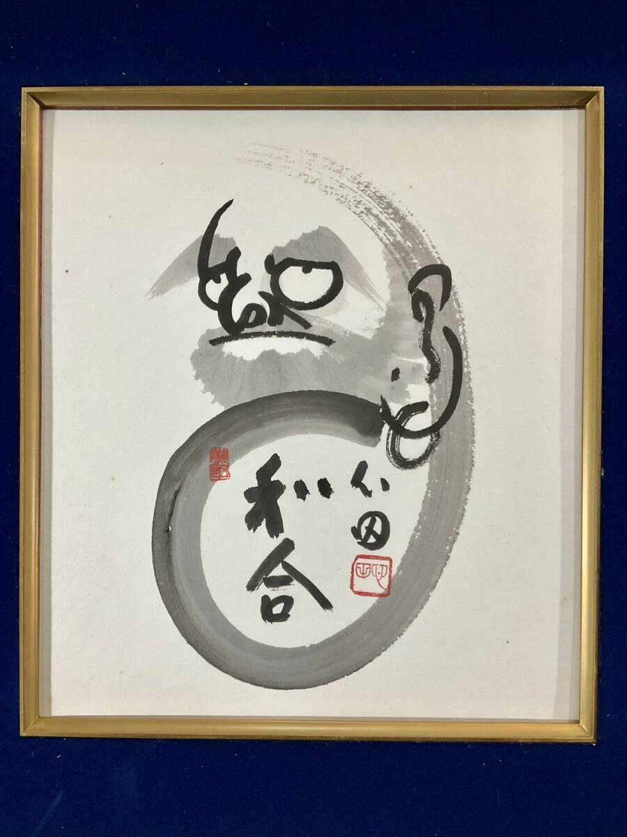 真作■墨画■国泰寺派管長 稲葉心田■『達磨』■色紙■額装 2a