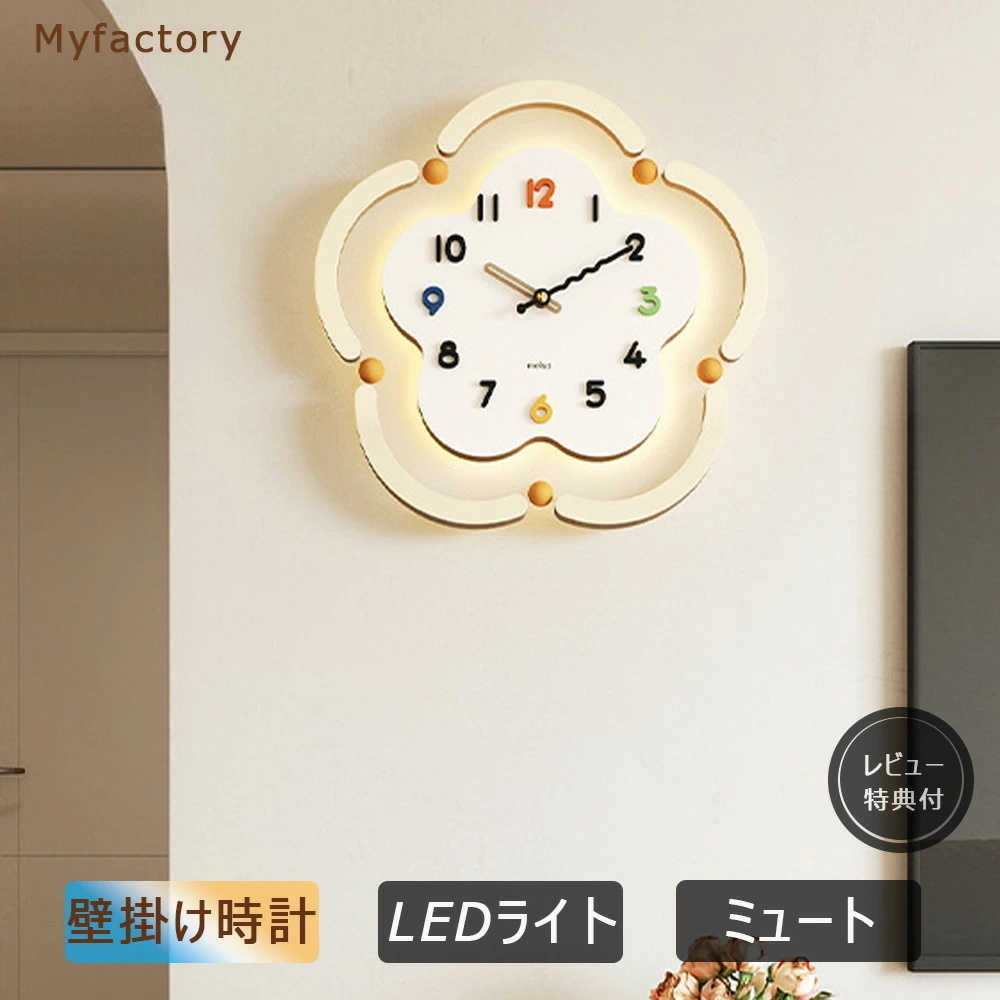 > 花掛け時計 壁掛け かべ掛け時計 ウォールクロック 北欧 シンプル LED 光る 発光 インテリア 音がしない 静音 モダン おしゃれ 35*35CM