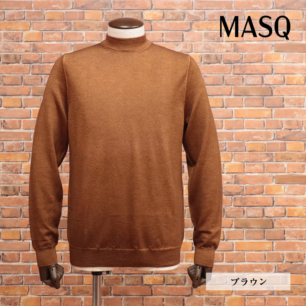 - 1円/秋冬/MASQ/XXLサイズ/長袖ニット イタリア製 ハイネック 製品染め メリノウール Tollegno 1900 新品/茶色/ブラウン/ma395/