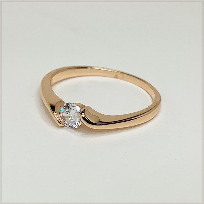 - [RING] 14K 585 Rose Gold Plated φ4mm ブリリアントCut CZ スムース サイドテンション デザイン ローズゴールドリング 11号