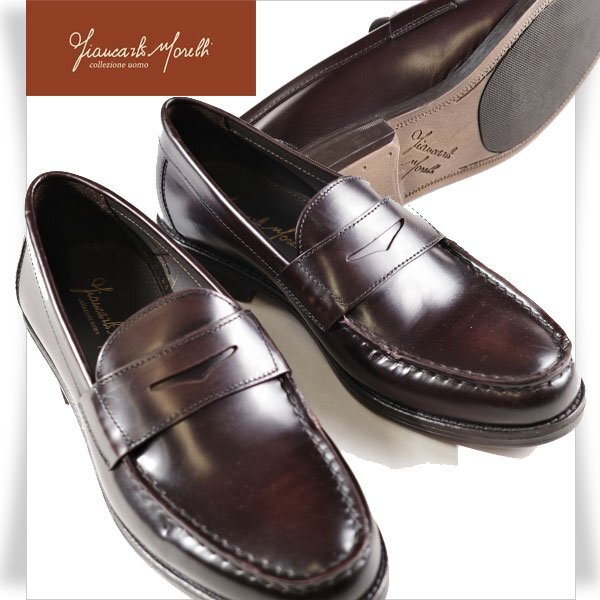 - 新品1円~★G.C.MORELLI GIANCARLO MORELLI ジャンカルロ モレリ メンズ 牛革レザー本革 シューズ 24.5cm ローファー 濃茶◆7520◆