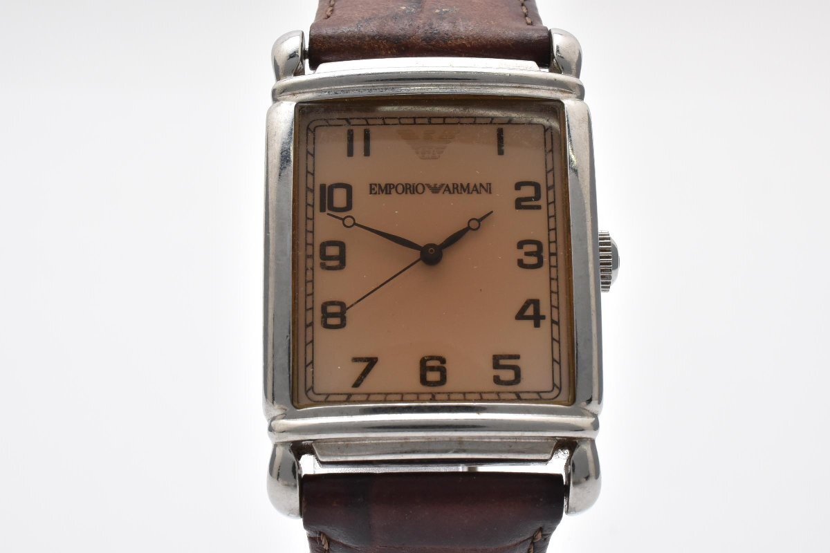 - EMPORIO ARMANI エンポリオ アルマーニ クォーツ スクエア レクタングル 腕時計 メンズ 3針 ホワイト シルバー AR-0203