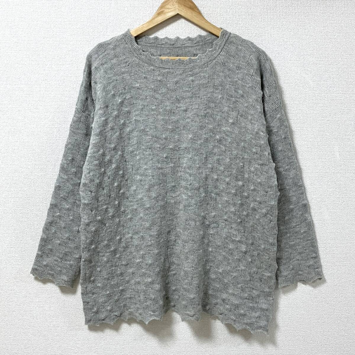 - HaaT ISSEY MIYAKE 凹凸 立体 スカラップ アルパカ混 ウール ニット カットソー グレー イッセイミヤケ 薄手 セーター archive 5040271