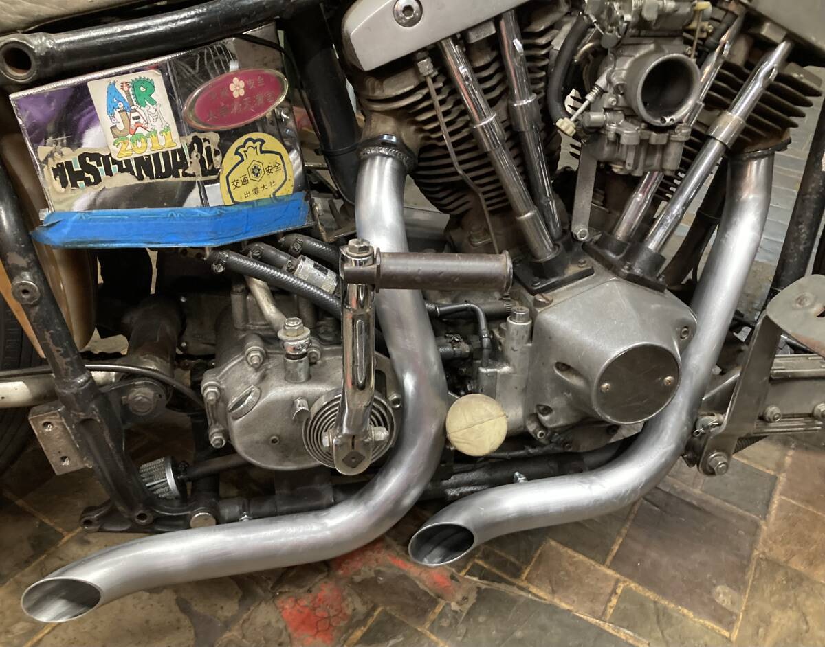 - ショベル ワンオフ マフラー オールドスタイル ターンアウト 検 リジット パン アーリー エボ ハーレー Q