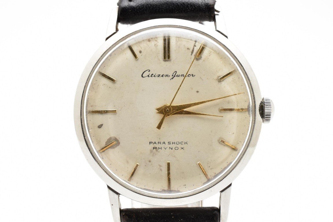 > 稼働品 CITIZEN シチズン J140307 シルバー ラウンド 金文字盤 レザーベルト 3針 レディース 腕時計 手巻き