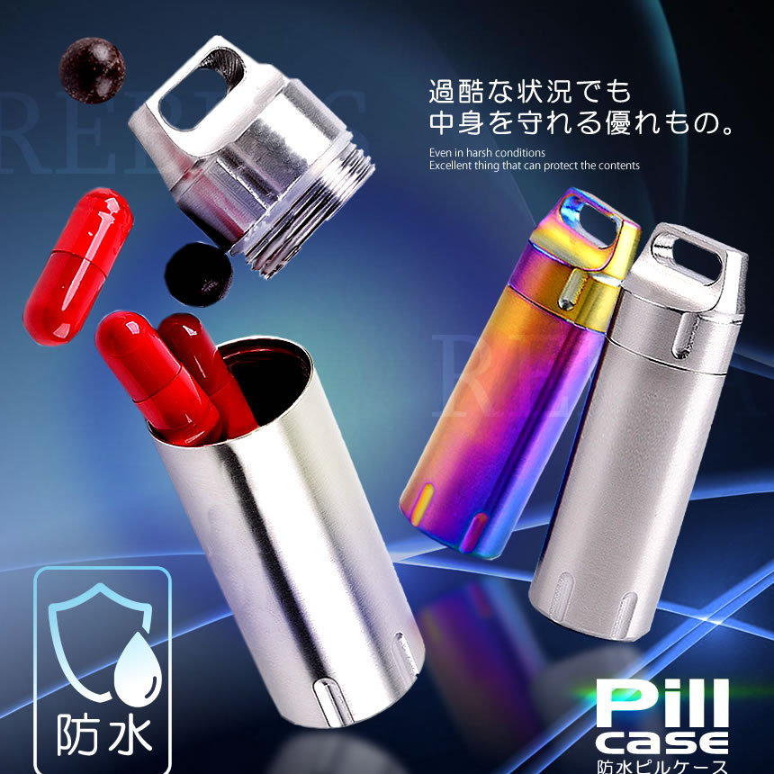 - 送料無料 防水 ピルケース 【レインボー】 小型 ミニ 携帯 薬入れ キーホルダー アウトドア サバイバル ツール