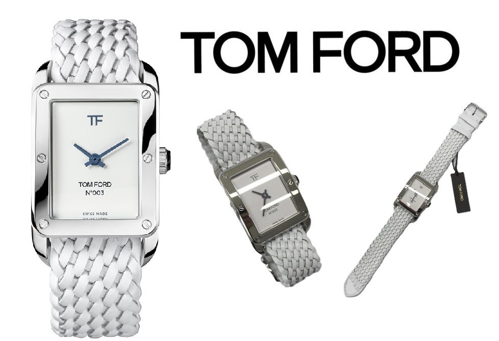 > ●35万新品◆TOMFORD トムフォード レクタングル腕時計 N.003 Sスティール ホワイトダイヤル メッシュレザーベルト 白 1円