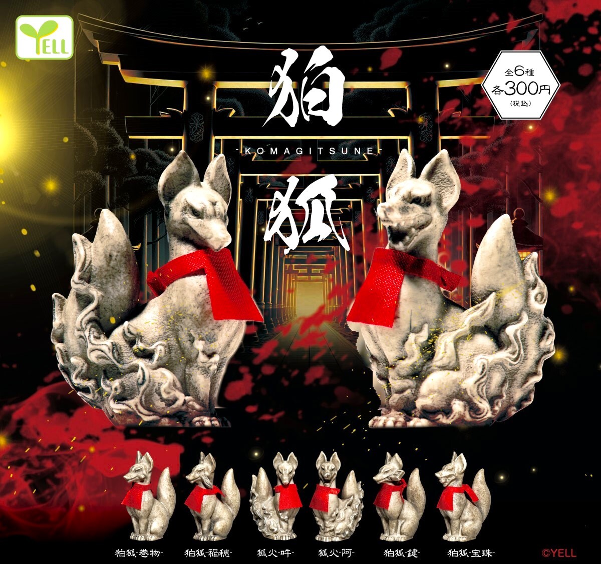 - 即決》狛狐【全6種フルコンプセット】送料無料 新品未開封 匿名配送 KOMAGITSUNE エール狛狐 狐火 阿/吽/鍵/宝珠/巻物/稲穂 狛犬 ガチャ