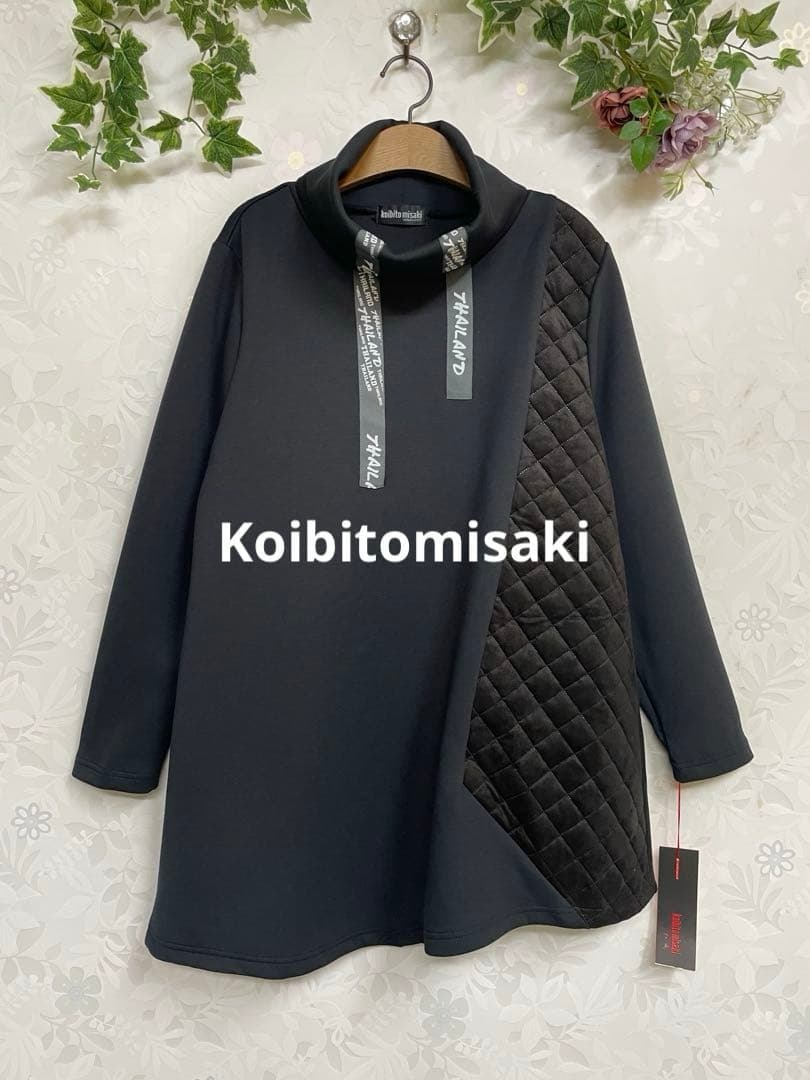 - ☆新品 コイビトミサキ 恋人岬 ほっこり♪キルティング切替え アシンメトリーチュニックM~L(BK)